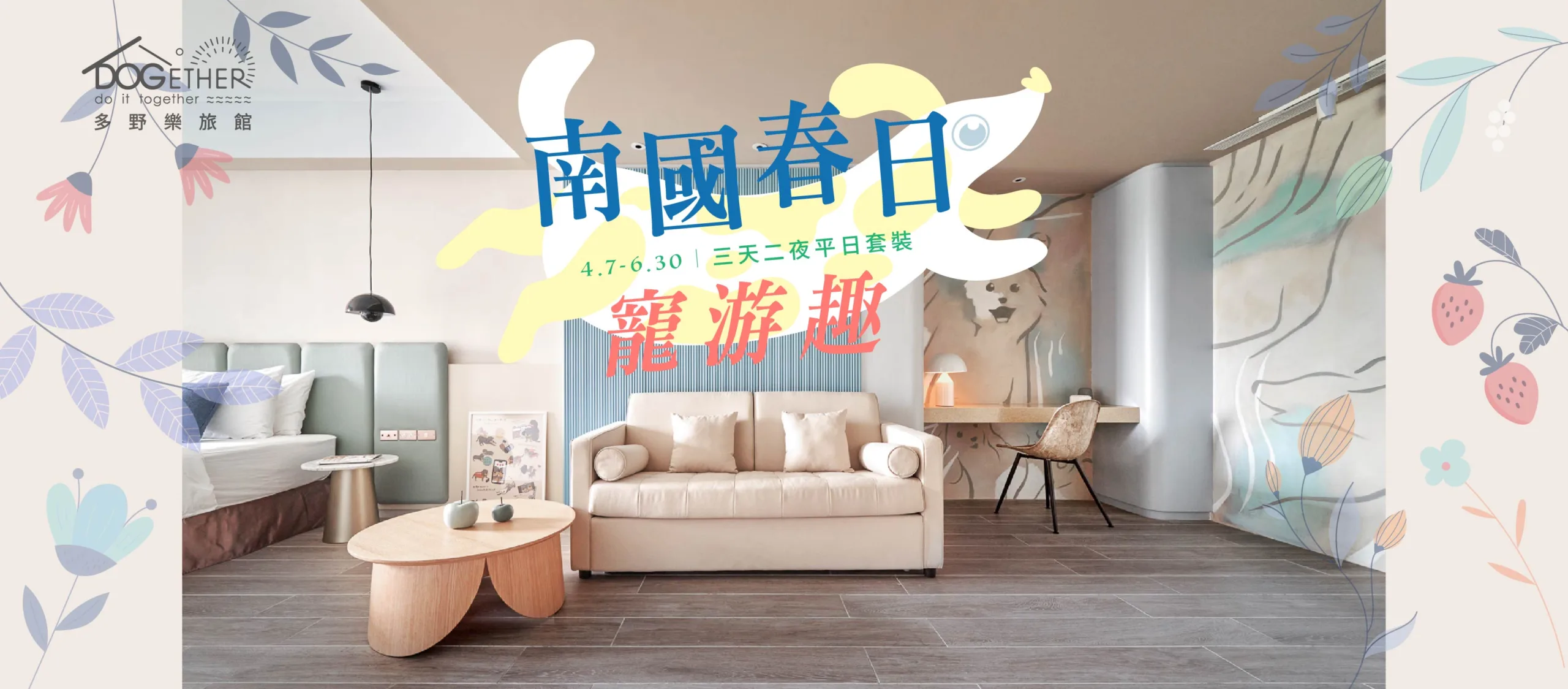 - 「南國春日。寵游趣|三天二夜平日套裝」週六、國定假日及特殊活動期間不適用,日期規範依旅館公告為準。